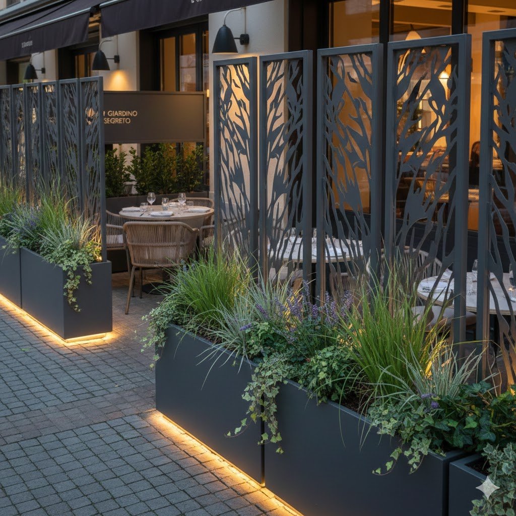 Dove la resistenza dell’acciaio incontra l’eleganza del design. Creiamo elementi unici per esterni che non delimitano solo gli spazi, ma raccontano l’identità del tuo brand.