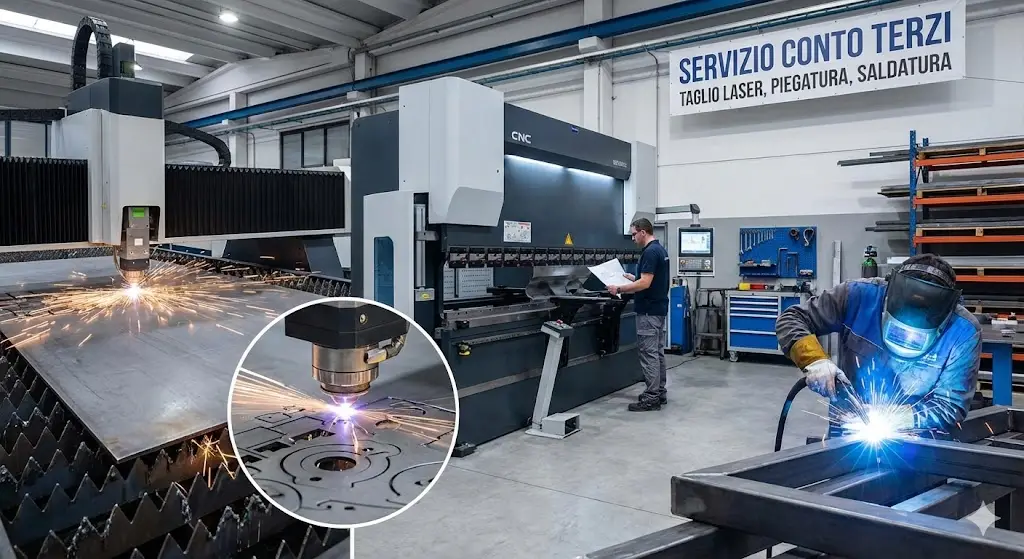 • Lavorazioni Conto Terzi: Mettiamo a disposizione macchinari all’avanguardia per taglio laser, piegatura CNC di precisione e saldatura.